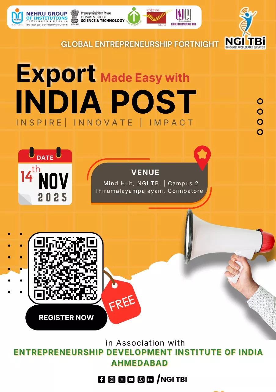 🌟 Celebration of Global Entrepreneurship Fortnight 🚀 Celebration of Global Entrepreneurship Fortnight NGI TBI, in association with EDII, Ahmedabad,proudly presents…