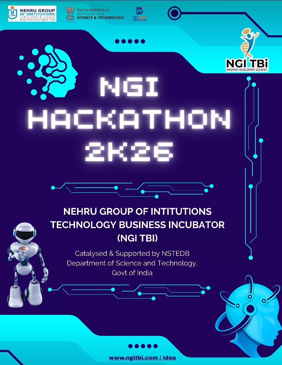 NGI HACKATHON 2025 National-level, AI-powered innovation challenge organized by the Nehru Group of Institutions Technology Business Incubator (NGI TBI), Tamil…